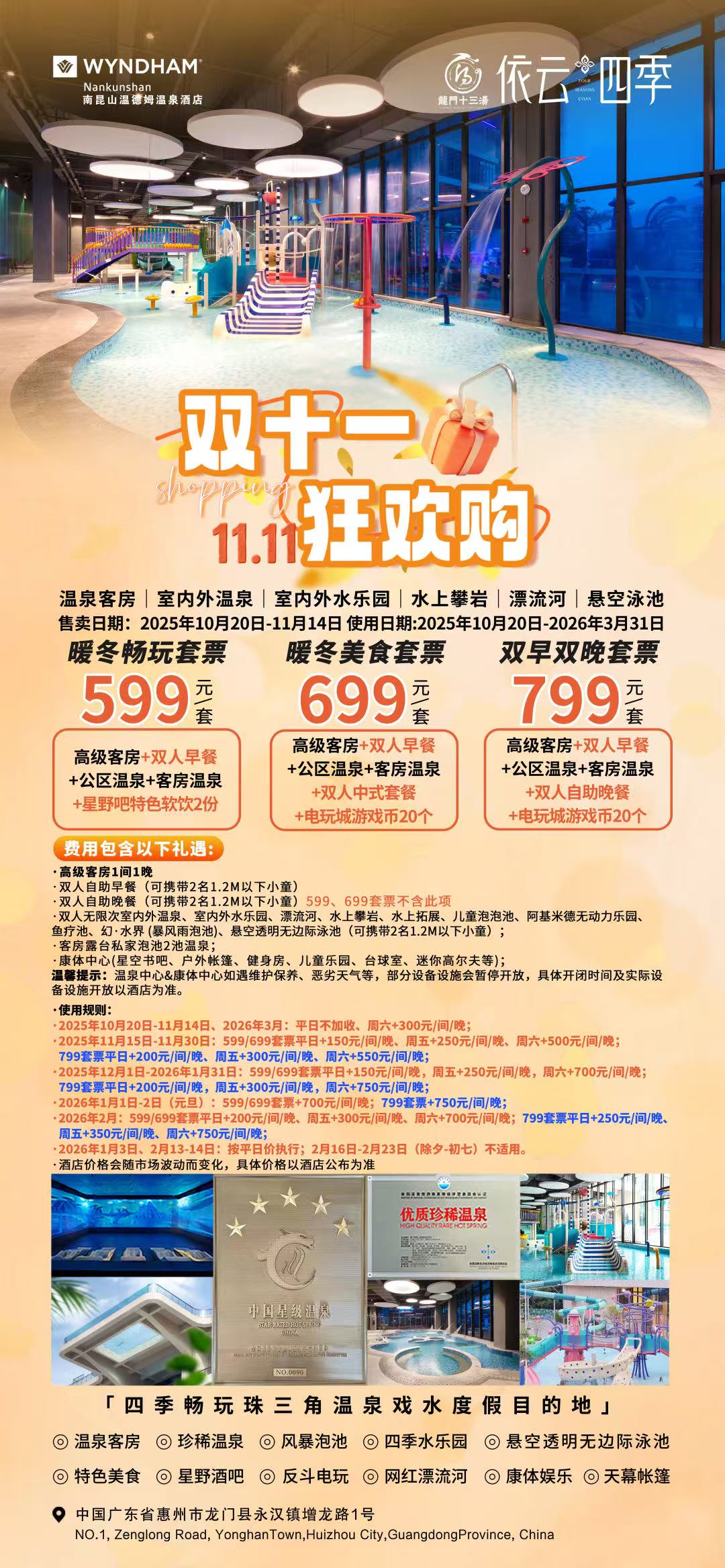 温泉客房 珍稀温泉 风暴泡池 四季水乐园 悬空透明无边际泳池